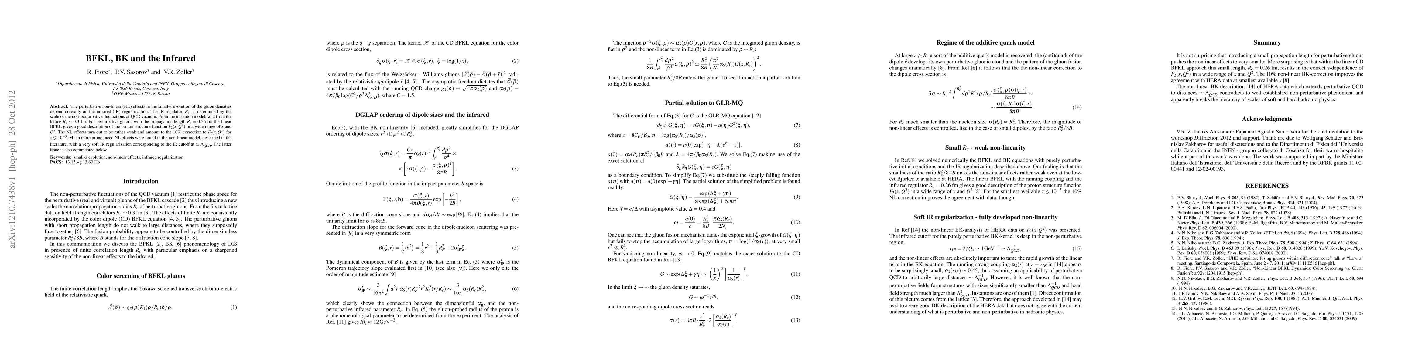 The research examines the impact of infrared (IR) regularization on small-x gluon density evolution, finding that a regulator R_c ~ 0.3 fm from instanton models and lattice QCD aligns well with linear BFKL for proton structure function F_2(x,Q^2) description. Nonlinear effects are minor (10% correction for x ~< 10^-5) compared to softer IR regularizations, which yield more pronounced effects.