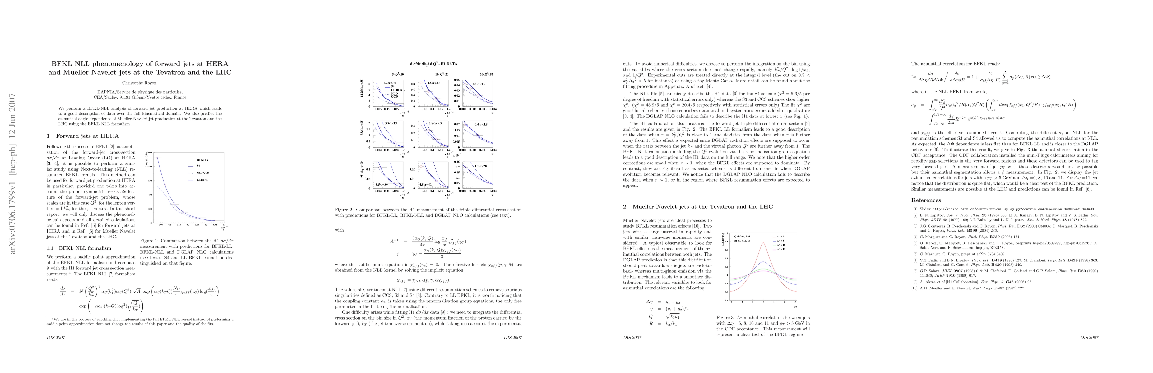 This paper conducts a BFKL-NLL analysis of forward jet production at HERA, achieving a good fit to the data across the entire kinematic range. It also predicts the azimuthal angle dependence of Mueller-Navelet jets at the Tevatron and LHC using the BFKL NLL formalism.