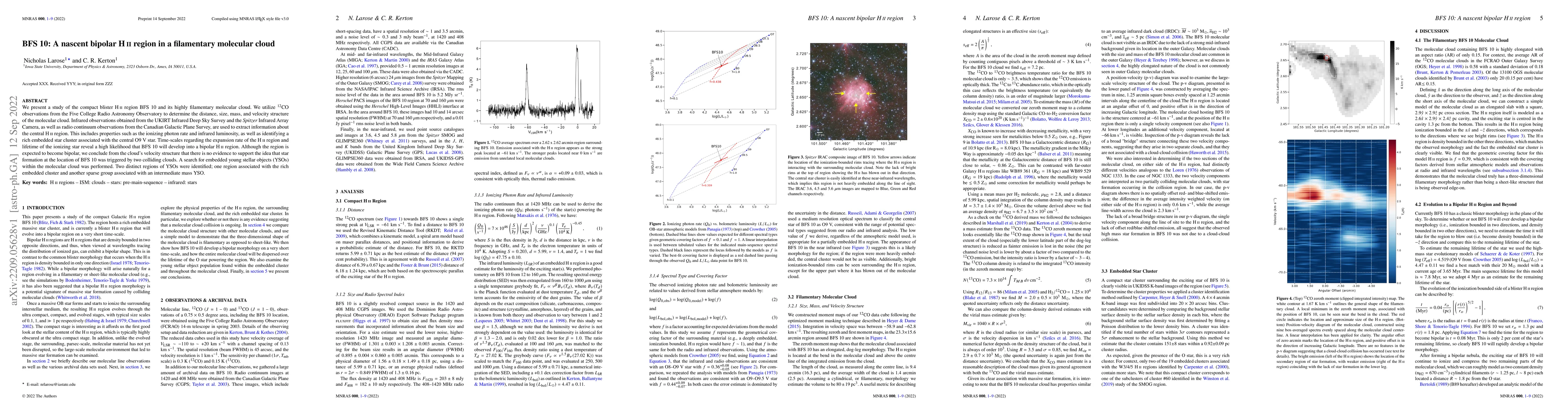 This study investigates the nascent bipolar H II region BFS 10 within a filamentary molecular cloud using multi-wavelength observations. The research finds evidence suggesting BFS 10 will likely evolve into a bipolar H II region, but no indication of triggering by colliding clouds.