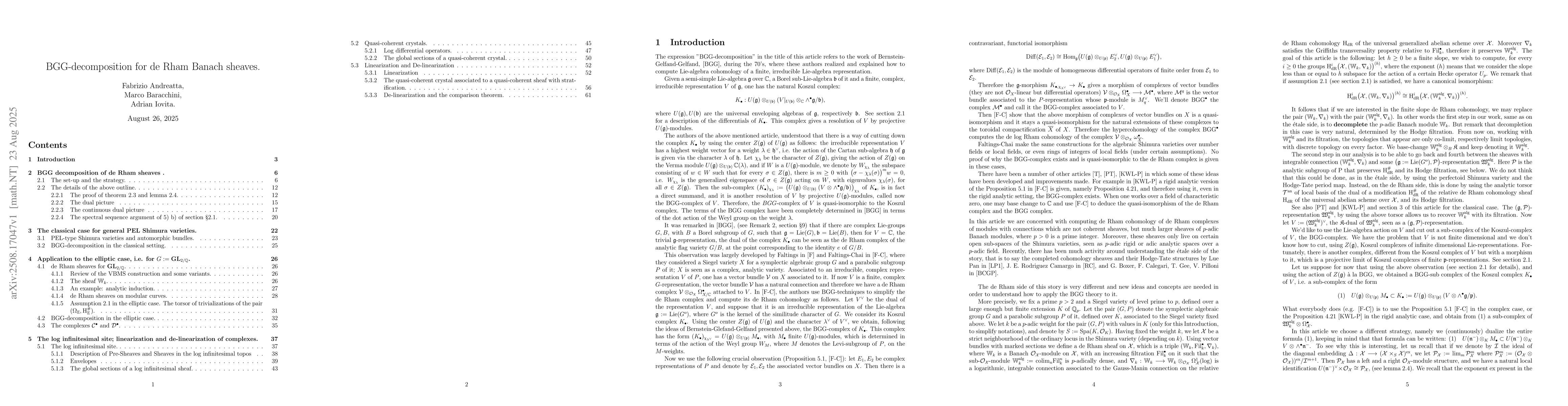 In this article we refer to "the BGG method" as a method in which by using Lie-algebra techniques one produces a complex of coherent sheaves on a Shimura variety, which is quasi-isomorphic to the de Rham complex of an automorphic vector bundle with integrable connection, on that Shimura variety. These BGG-complexes are in many ways "smaller" than the de Rham complex and have better cohomological properties. These BGG complexes contribute to the understanding of automorphic representations. In this article, we extend the BGG technique and apply it to complexes of Banach-modules with integrable connection on relevant open subspaces of Shimura varieties, seen as adic analytic spaces. Furthermore, we explain how this method can be used to obtain a new computation of the de Rham cohomology of certain p-adic automorphic representations in the GL_2 case. In future work, the authors intend to apply the techniques developed here to the Hilbert and Siegel cases.