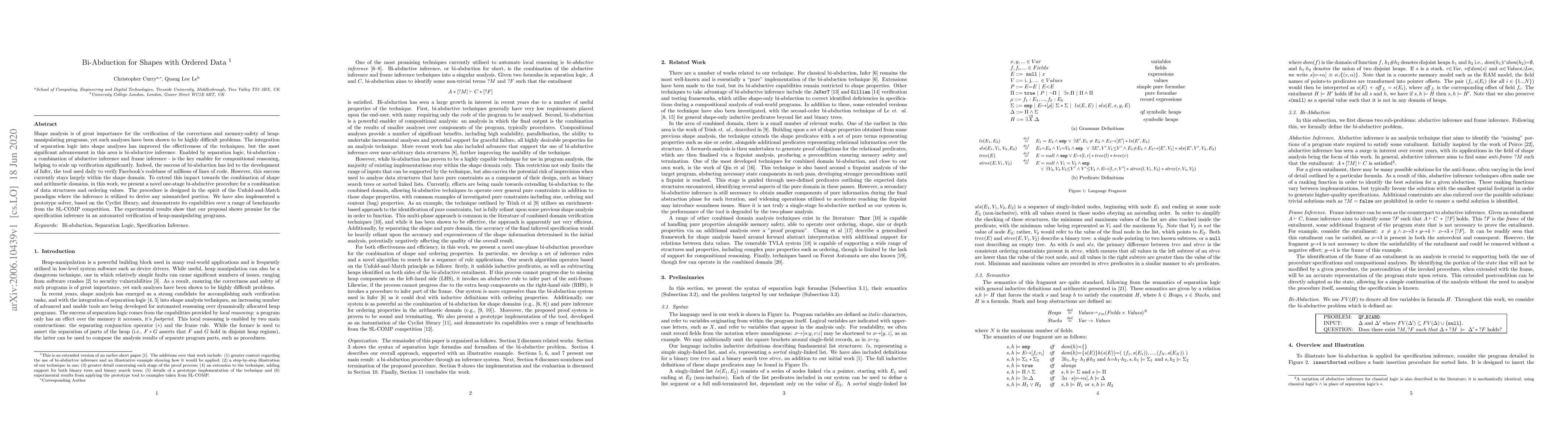 Shape analysis is of great importance for the verification of the correctness and memory-safety of heap-manipulating programs, yet such analyses have been shown to be highly difficult problems. The integration of separation logic into shape analyses has improved the effectiveness of the techniques, but the most significant advancement in this area is bi-abductive inference. Enabled by separation logic, bi-abduction - a combination of abductive inference and frame inference - is the key enabler for compositional reasoning, helping to scale up verification significantly. Indeed, the success of bi-abduction has led to the development of Infer, the tool used daily to verify Facebook's codebase of millions of lines of code. However, this success currently stays largely within the shape domain. To extend this impact towards the combination of shape and arithmetic domains, in this work, we present a novel one-stage bi-abductive procedure for a combination of data structures and ordering values. The procedure is designed in the spirit of the Unfold-and-Match paradigm where the inference is utilized to derive any mismatched portion. We have also implemented a prototype solver, based on the Cyclist library, and demonstrate its capabilities over a range of benchmarks from the SL-COMP competition. The experimental results show that our proposal shows promise for the specification inference in an automated verification of heap-manipulating programs.