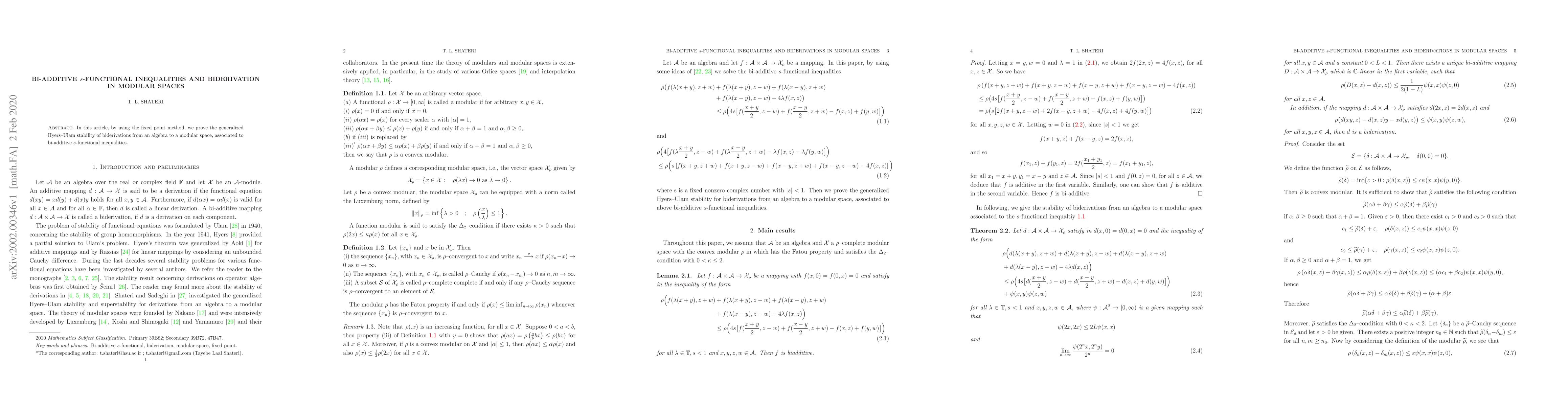 In this article, by using the fixed point method, we prove the generalized Hyers--Ulam stability of biderivations from an algebra to a modular space, associated to bi-additive s-functional inequalities.