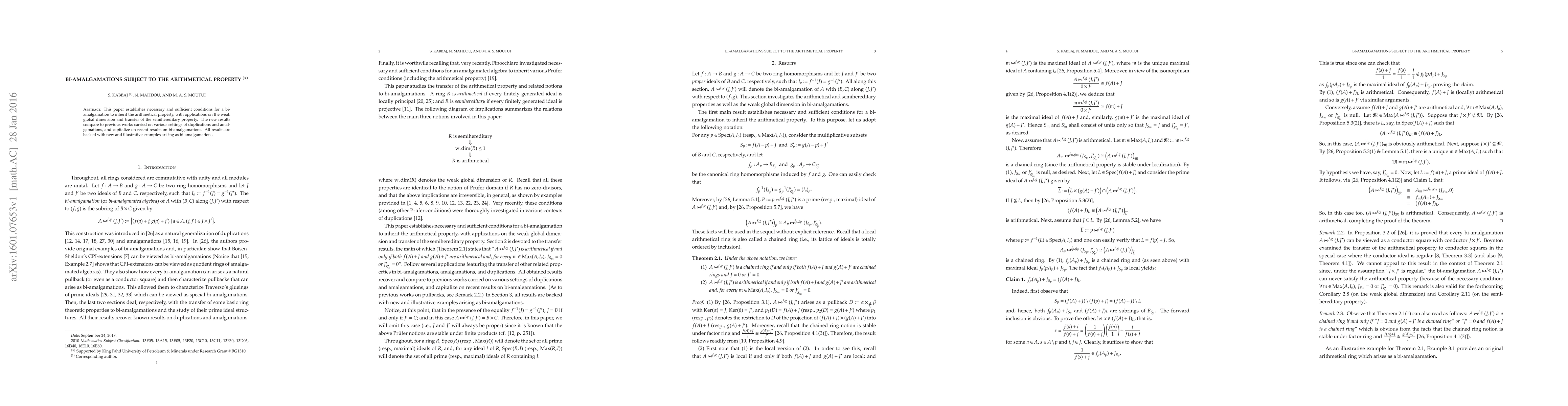 This paper identifies conditions for bi-amalgamations to inherit the arithmetical property, with implications for weak global dimension and semihereditary property transfer, supported by new examples. The findings extend and refine previous research on duplications and amalgamations.