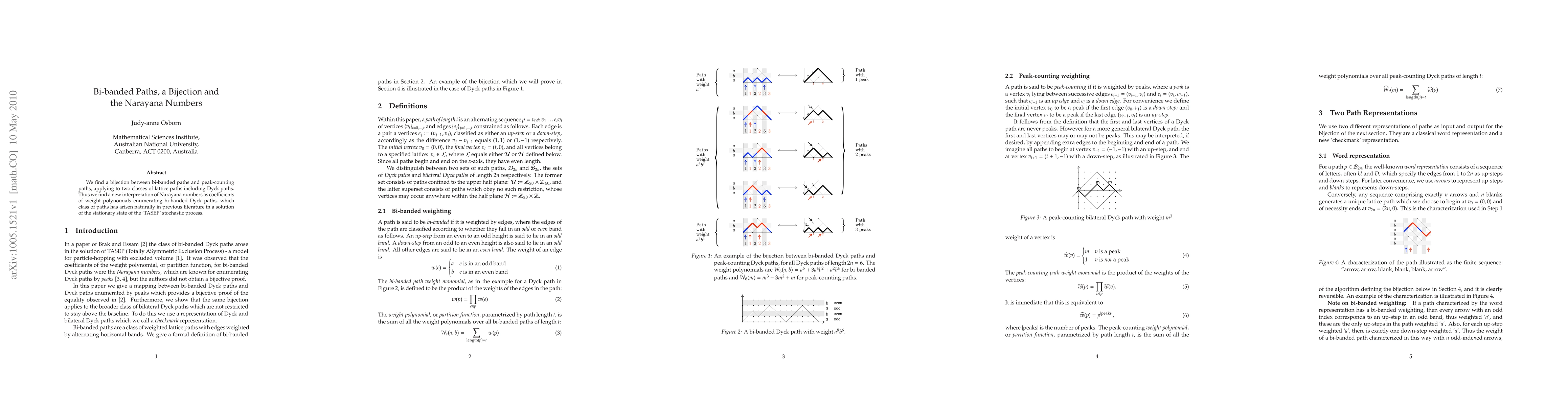 We find a bijection between bi-banded paths and peak-counting paths, applying to two classes of lattice paths including Dyck paths. Thus we find a new interpretation of Narayana numbers as coefficients of weight polynomials enumerating bi-banded Dyck paths, which class of paths has arisen naturally in previous literature in a solution of the stationary state of the `TASEP' stochastic process.