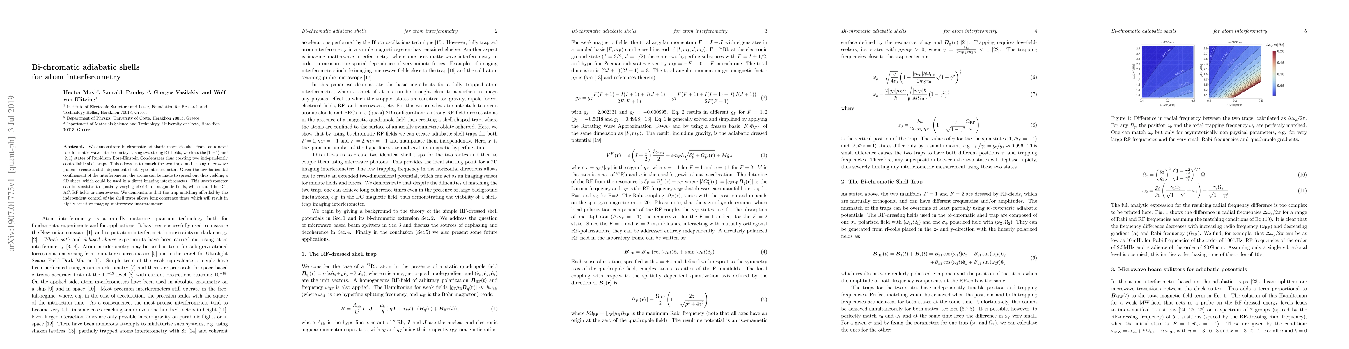 We demonstrate bi-chromatic adiabatic magnetic shell traps as a novel tool for matterwave interferometry. Using two strong RF fields, we dress the $|1,-1\rangle $ and $ |2,1\rangle$ states of Rubidium Bose-Einstein Condensates thus creating two independently controllable shell traps. This allows us to match the two traps and, using microwave pulses, create a state-dependent clock-type interferometer. Given the low horizontal confinement of the interferometer, the atoms can be made to spread out thus yielding a 2D sheet, which could be used in a direct imaging interferometer. This interferometer can be sensitive to spatially varying electric or magnetic fields, which could be DC, AC, RF fields or microwaves, or even local variations in gravity. We demonstrate that the trap-matching afforded by the independent control of the shell traps allows long coherence times which will result in highly sensitive imaging matterwave interferometers.