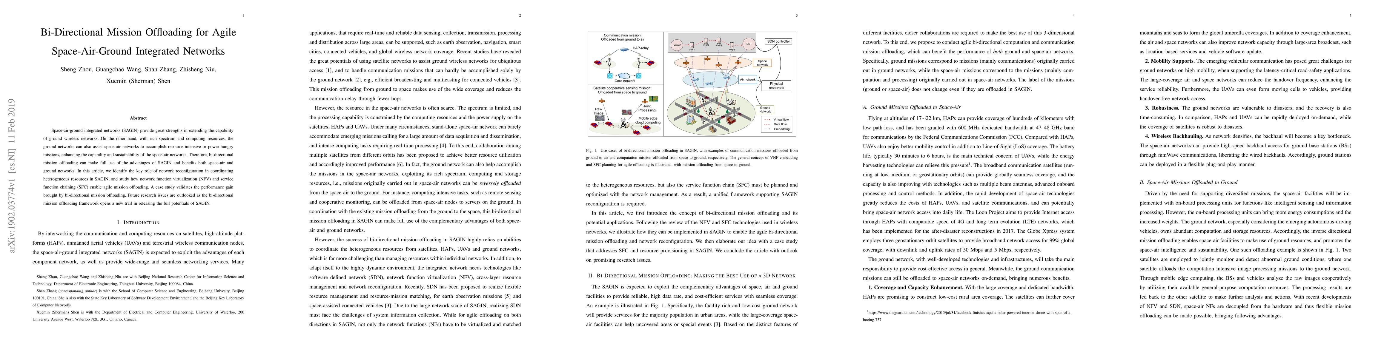 This paper explores bi-directional mission offloading in space-air-ground integrated networks (SAGIN), leveraging both space-air and ground networks' resources to enhance capabilities. It highlights the role of network reconfiguration and the use of network function virtualization (NFV) and service function chaining (SFC) to enable agile mission offloading, validated through a case study.