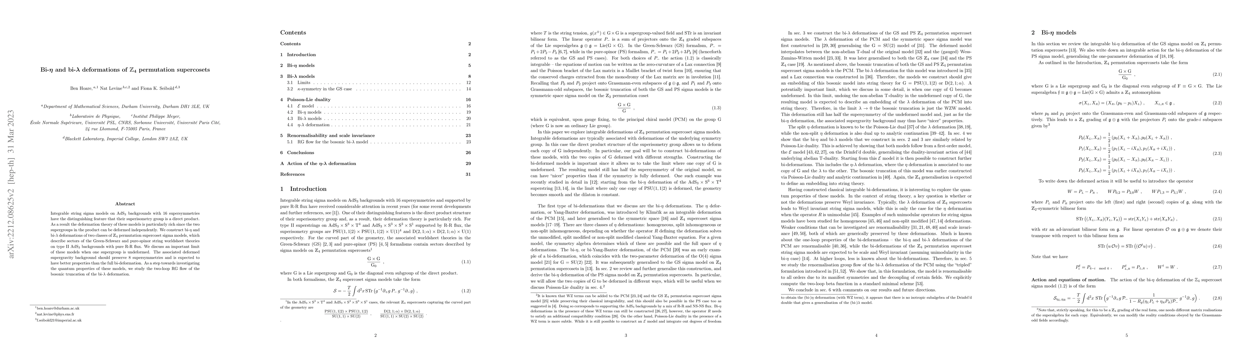 This paper constructs bi-$\eta$ and bi-$\lambda$ deformations of $\mathbb{Z}_4$ permutation supercoset sigma models in integrable string sigma models on AdS$_3$ with 16 supersymmetries. It explores the quantum properties by studying the two-loop RG flow of the bosonic truncation of the bi-$\lambda$ deformation.