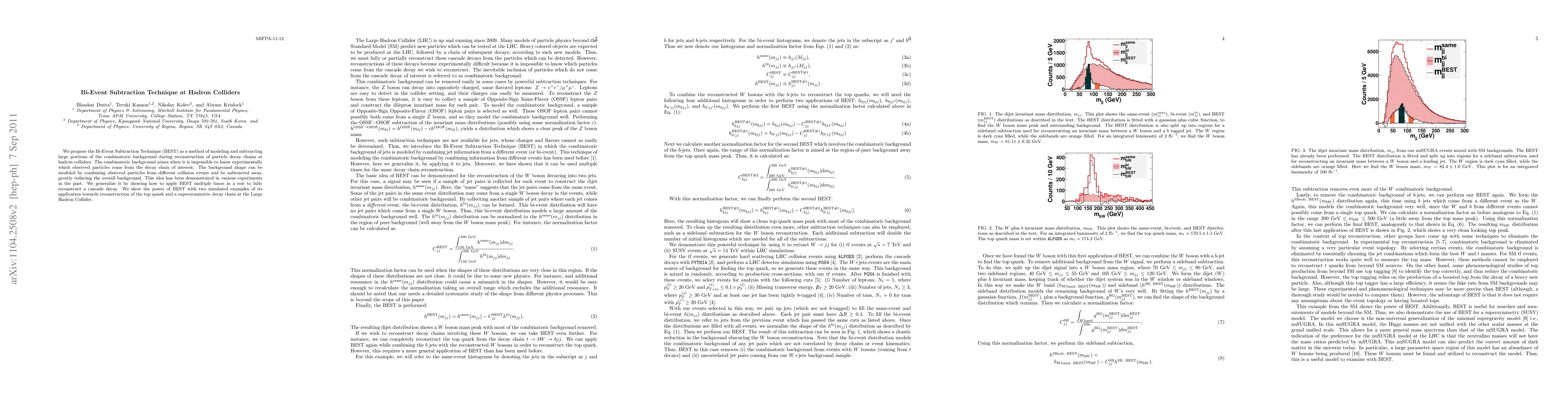 We propose the Bi-Event Subtraction Technique (BEST) as a method of modeling and subtracting large portions of the combinatoric background during reconstruction of particle decay chains at hadron colliders. The combinatoric background arises when it is impossible to know experimentally which observed particles come from the decay chain of interest. The background shape can be modeled by combining observed particles from different collision events and be subtracted away, greatly reducing the overall background. This idea has been demonstrated in various experiments in the past. We generalize it by showing how to apply BEST multiple times in a row to fully reconstruct a cascade decay. We show the power of BEST with two simulated examples of its application towards reconstruction of the top quark and a supersymmetric decay chain at the Large Hadron Collider.