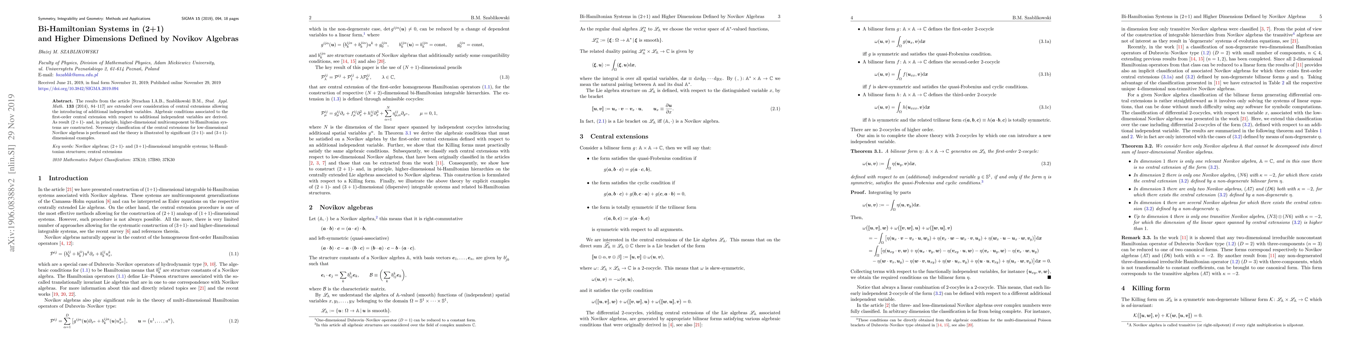 Researchers have extended a method to create multicomponent bi-Hamiltonian systems in higher dimensions using Novikov algebras, enabling classification of central extensions for low-dimensional cases.