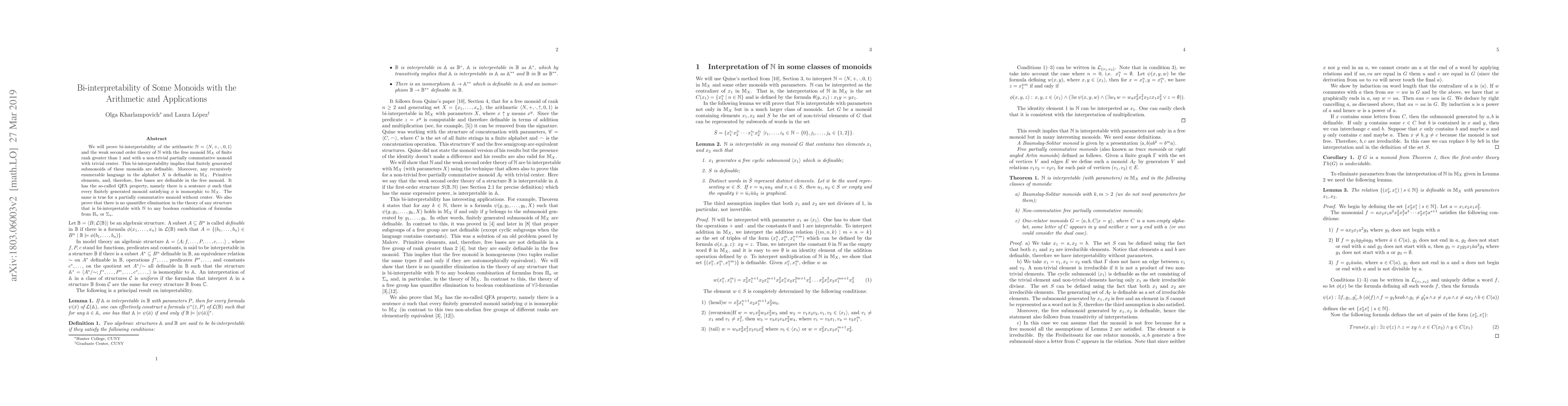This paper establishes bi-interpretability between the arithmetic system and a free monoid with specific properties, leading to definability of various structures and languages.