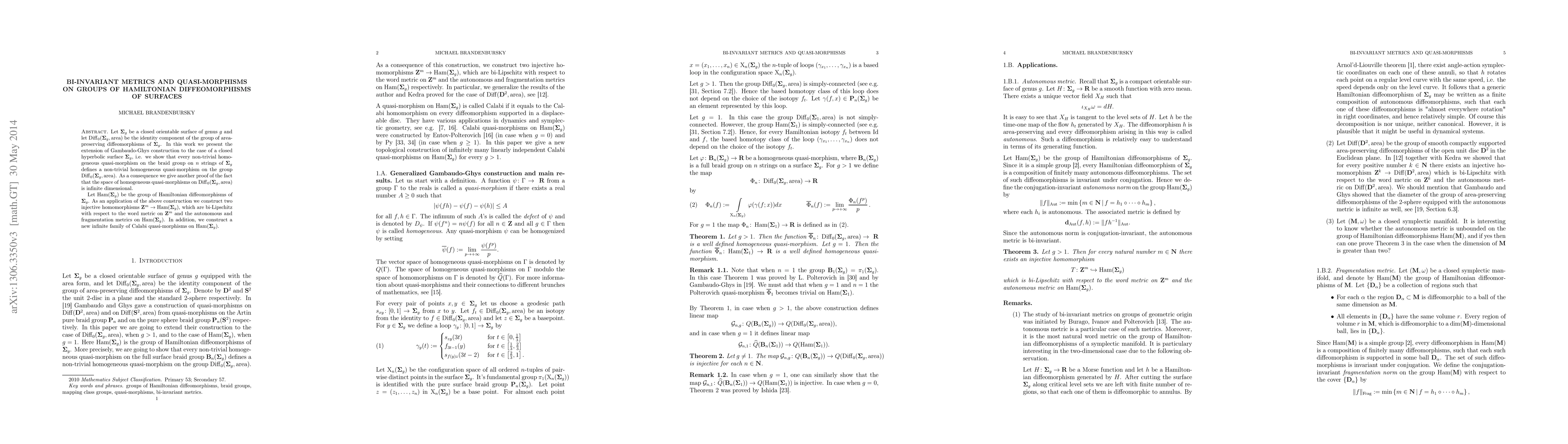 This paper extends Gambaudo-Ghys construction to show that non-trivial homogeneous quasi-morphisms on braid groups define similar quasi-morphisms on area-preserving diffeomorphisms, proving the infinite dimensionality of such quasi-morphisms. It also constructs injective bi-Lipschitz homomorphisms from Z^m to the Hamiltonian diffeomorphism group and a new family of Calabi quasi-morphisms.