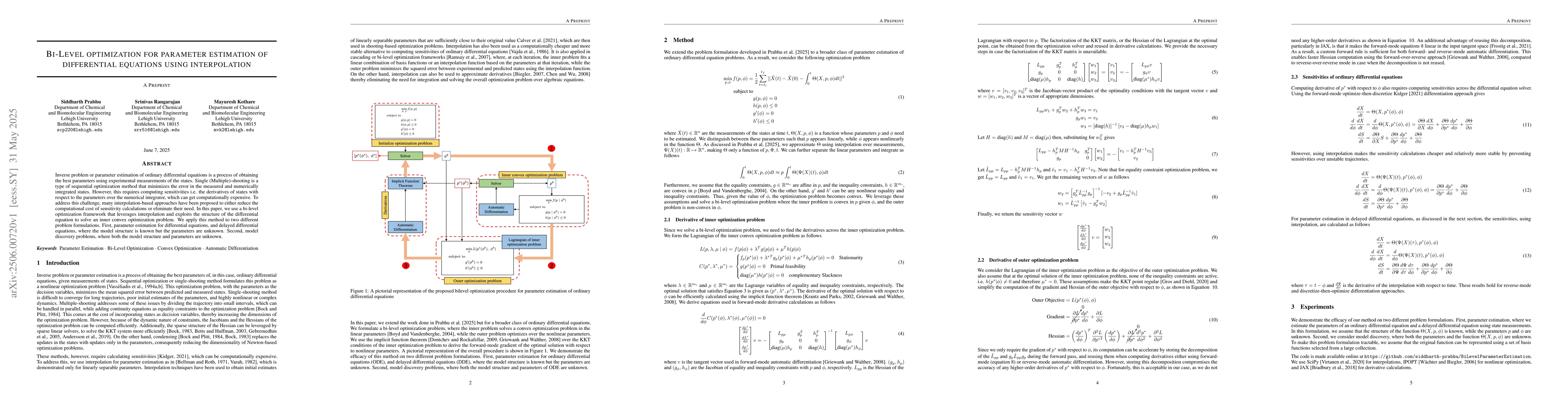 This work introduces a novel application of bi-level optimization combined with interpolation for addressing inverse problems in differential equations, extending previous interpolation-based approaches.
