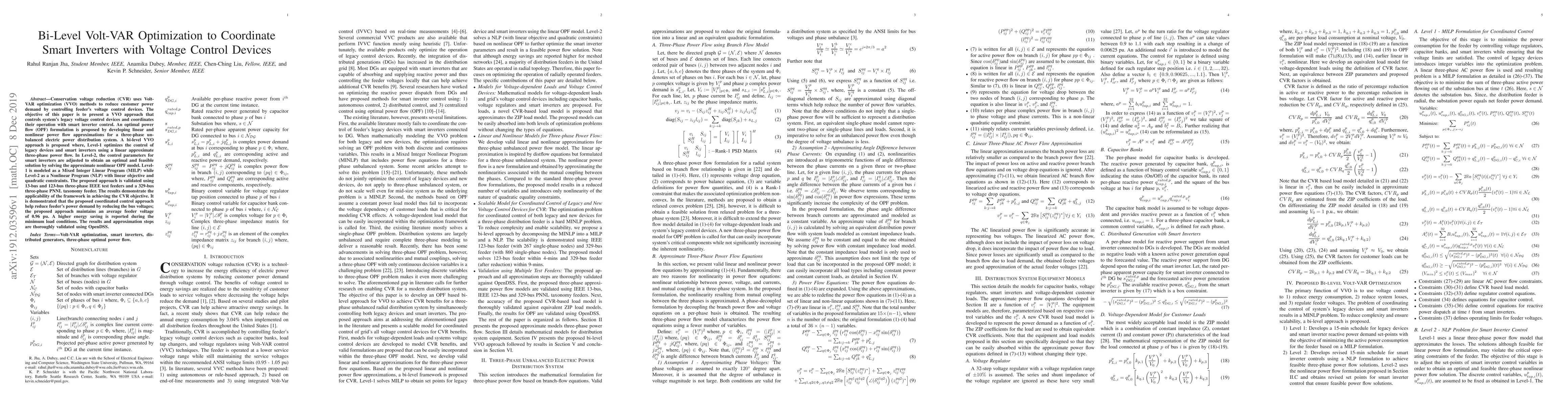 This paper proposes a bi-level Volt-VAR optimization approach to coordinate smart inverters with legacy voltage control devices for conservation voltage reduction. The method optimizes the control of both devices using linear and nonlinear power flow approximations, validated on multiple test feeders, demonstrating significant energy savings, especially during low load conditions.