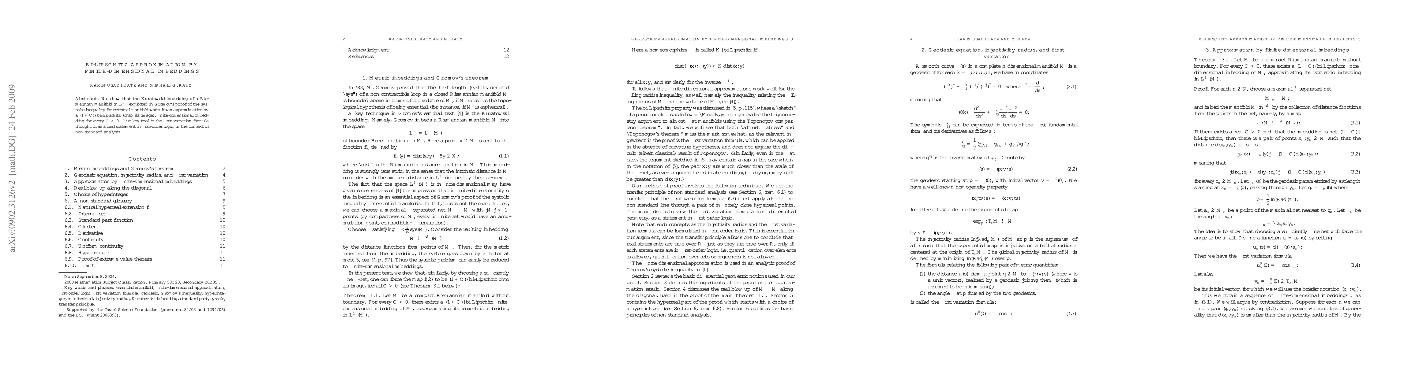 We show that the Kuratowski imbedding of a Riemannian manifold in L^\infty, exploited in Gromov's proof of the systolic inequality for essential manifolds, admits an approximation by a (1+C)-bi-Lipschitz (onto its image), finite-dimensional imbedding for every C>0. Our key tool is the first variation formula thought of as a real statement in first-order logic, in the context of non-standard analysis.