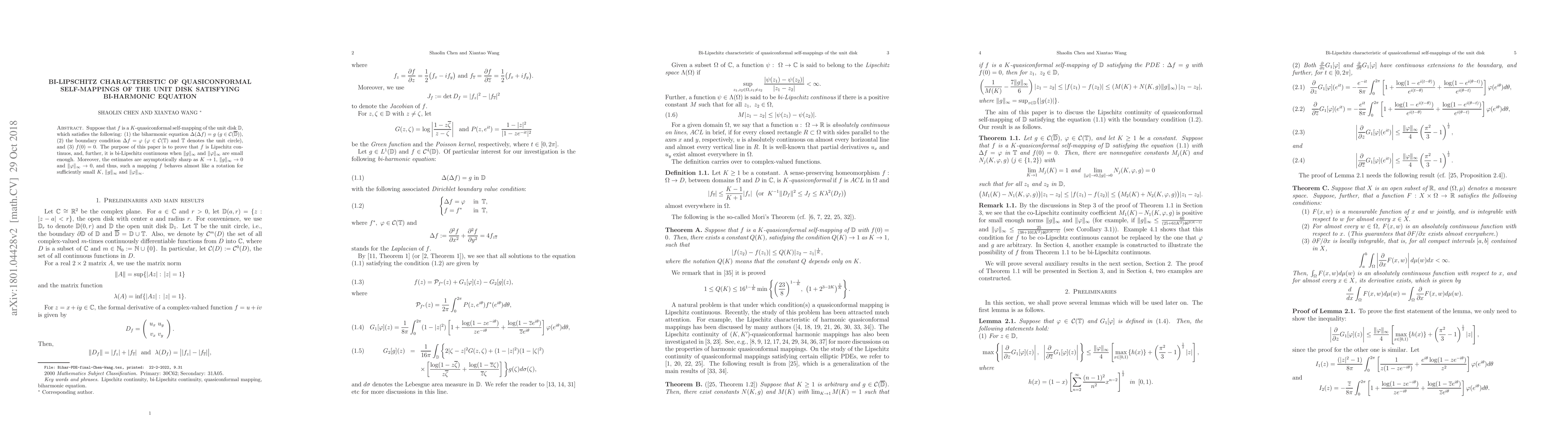 Suppose that $f$ is a $K$-quasiconformal self-mapping of the unit disk $\mathbb{D}$, which satisfies the following: $(1)$ the biharmonic equation $\Delta(\Delta f)=g$ $(g\in \mathcal{C}(\overline{\mathbb{D}}))$, (2) the boundary condition $\Delta f=\varphi$ ($\varphi\in\mathcal{C}(\mathbb{T})$ and $\mathbb{T}$ denotes the unit circle), and $(3)$ $f(0)=0$. The purpose of this paper is to prove that $f$ is Lipschitz continuos, and, further, it is bi-Lipschitz continuous when $\|g\|_{\infty}$ and $\|\varphi\|_{\infty}$ are small enough. Moreover, the estimates are asymptotically sharp as $K\to 1$, $\|g\|_{\infty}\to 0$ and $\|\varphi\|_{\infty}\to 0$, and thus, such a mapping $f$ behaves almost like a rotation for sufficiently small $K$, $\|g\|_{\infty}$ and $\|\varphi\|_{\infty}$.