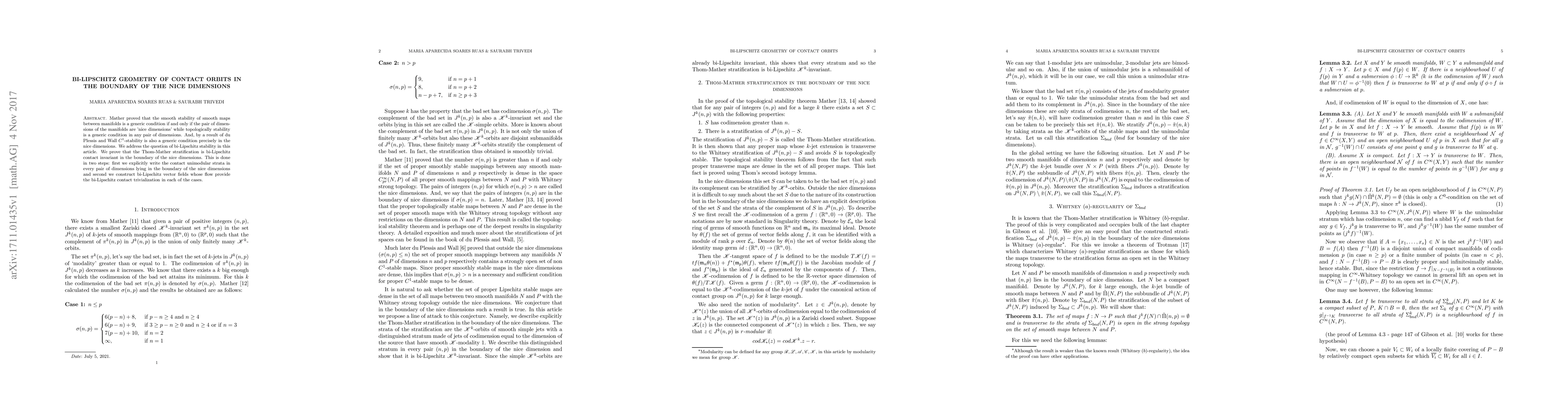 Mather proved that the smooth stability of smooth maps between manifolds is a generic condition if and only if the pair of dimensions of the manifolds are 'nice dimensions' while topologically stability is a generic condition in any pair of dimensions. And, by a result of du Plessis and Wall $C^1$-stability is also a generic condition precisely in the nice dimensions. We address the question of bi-Lipschitz stability in this article. We prove that the Thom-Mather stratification is bi-Lipschitz contact invariant in the boundary of the nice dimensions. This is done in two steps: first we explicitly write the contact unimodular strata in every pair of dimensions lying in the boundary of the nice dimensions and second we construct bi-Lipschitz vector fields whose flow provide the bi-Lipschitz contact trivialization in each of the cases.