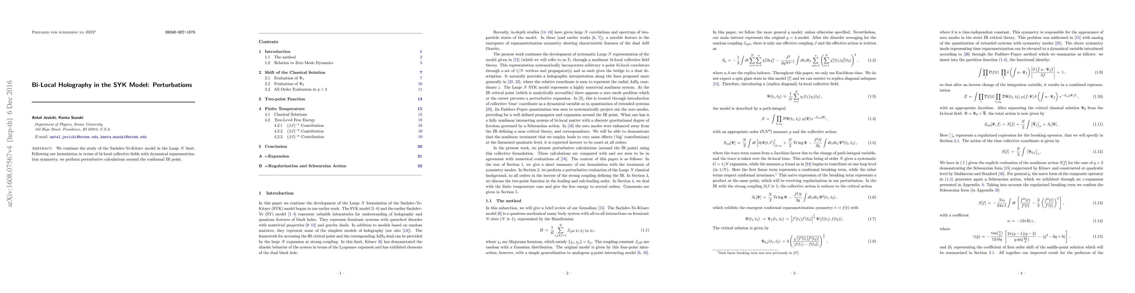 Researchers study perturbations in the Sachdev-Ye-Kitaev model using bi-local collective fields, revealing insights into the Large N limit.