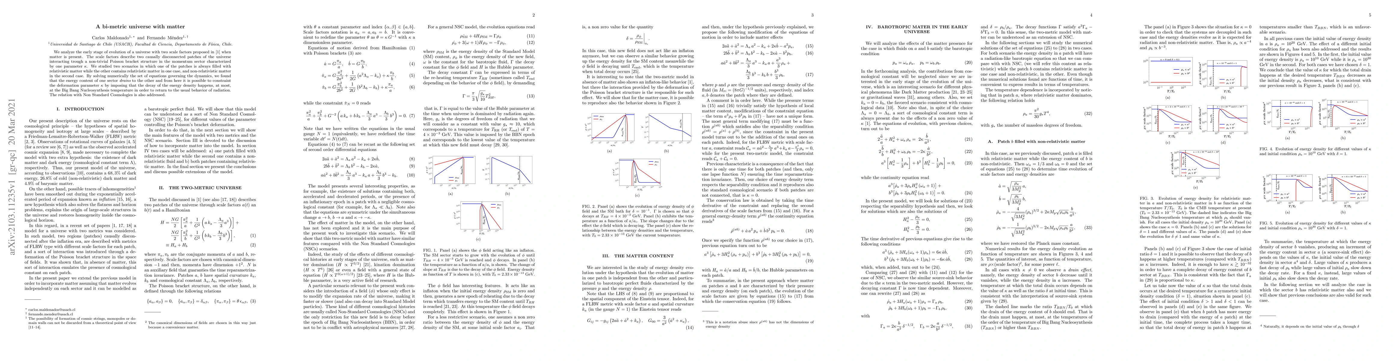 We analyze the early stage of evolution of a universe with two scale factors proposed in [1] when matter is present. The scale factors describe two causally disconnected patches of the universe interacting trough a non-trivial Poisson bracket structure in the momentum sector characterized by one parameter \kappa. We studied two scenarios in which one of the patches is always filled with relativistic matter while the other contains relativistic matter in one case, and non-relativistic matter in the second case. By solving numerically the set of equations governing the dynamics, we found that the energy content of one sector drains to the other and from here it is possible to constraint the deformation parameter \kappa by imposing that the decay of the energy density happens, at most, at the Big Bang Nucleosynthesis temperature in order to return to the usual behavior of radiation. The relation with Non Standard Cosmologies is also addressed.