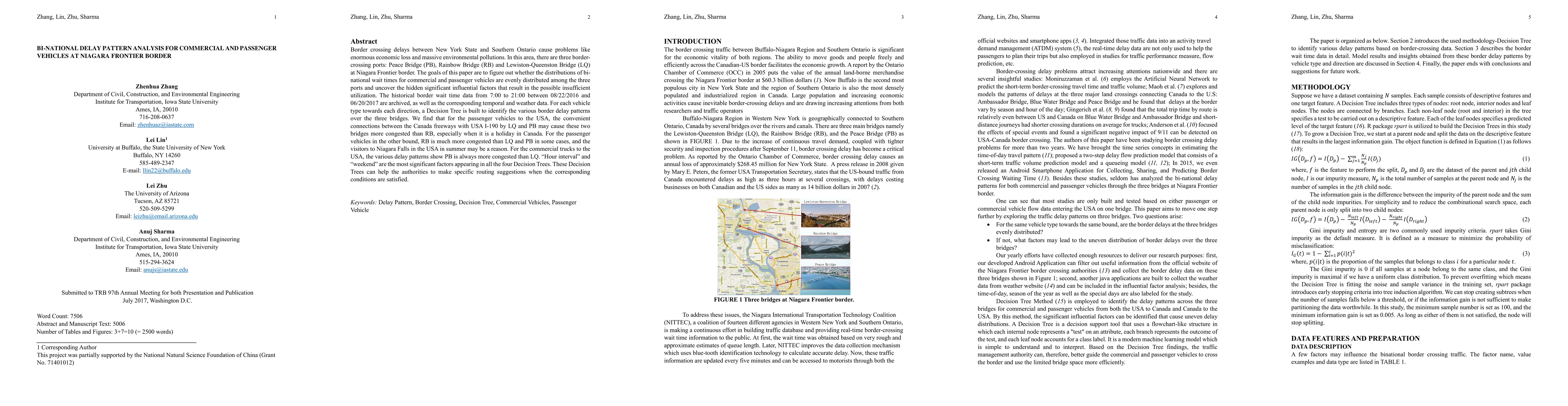 This paper analyzes bi-national delay patterns for commercial and passenger vehicles at three Niagara Frontier border crossing ports. It finds that congestion varies based on vehicle type and direction, with significant factors being time of day and weekends, and suggests routing adjustments to optimize traffic flow.