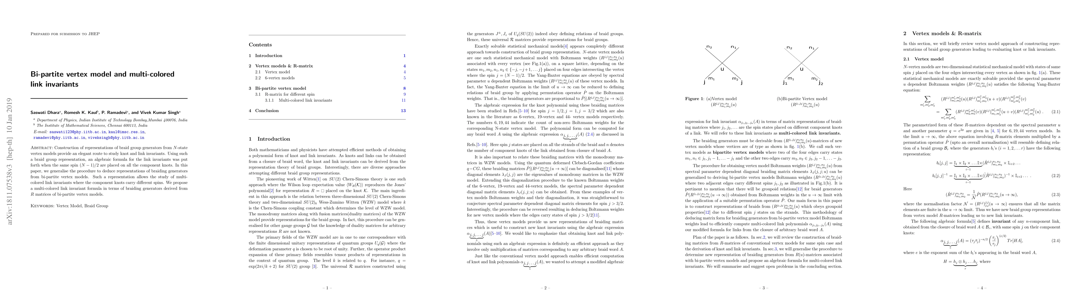 This paper generalizes braid group representations from $N$-state vertex models to bi-partite vertex models, enabling the study of multi-colored link invariants with varying spins on component knots. It proposes a new algebraic formula for these invariants using $R$ matrices from bi-partite vertex models.