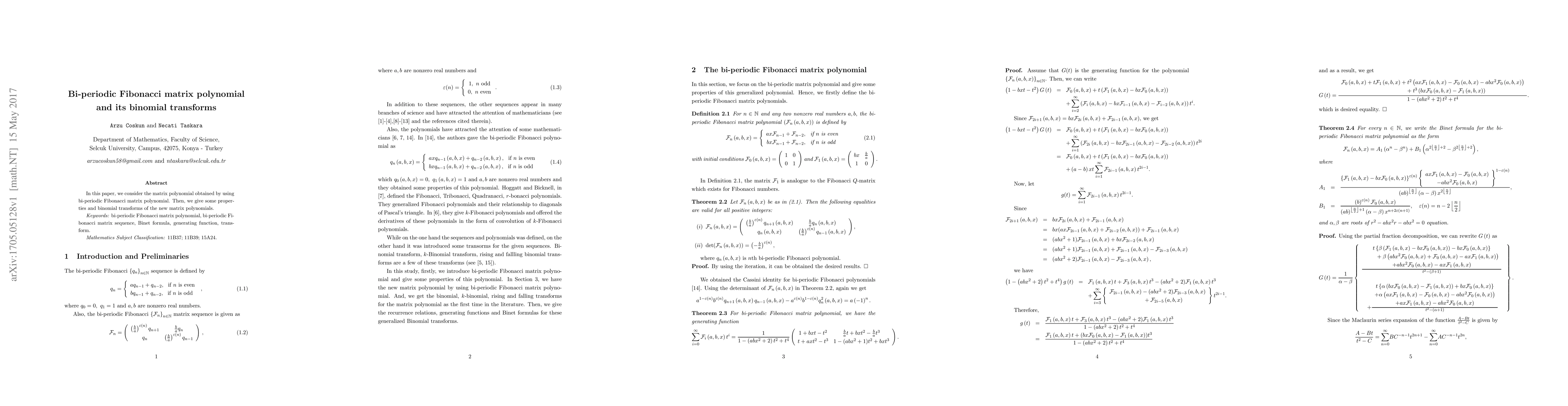 This paper investigates matrix polynomials based on bi-periodic Fibonacci sequences, exploring their properties and binomial transforms with potential implications for mathematical modeling and analysis.
