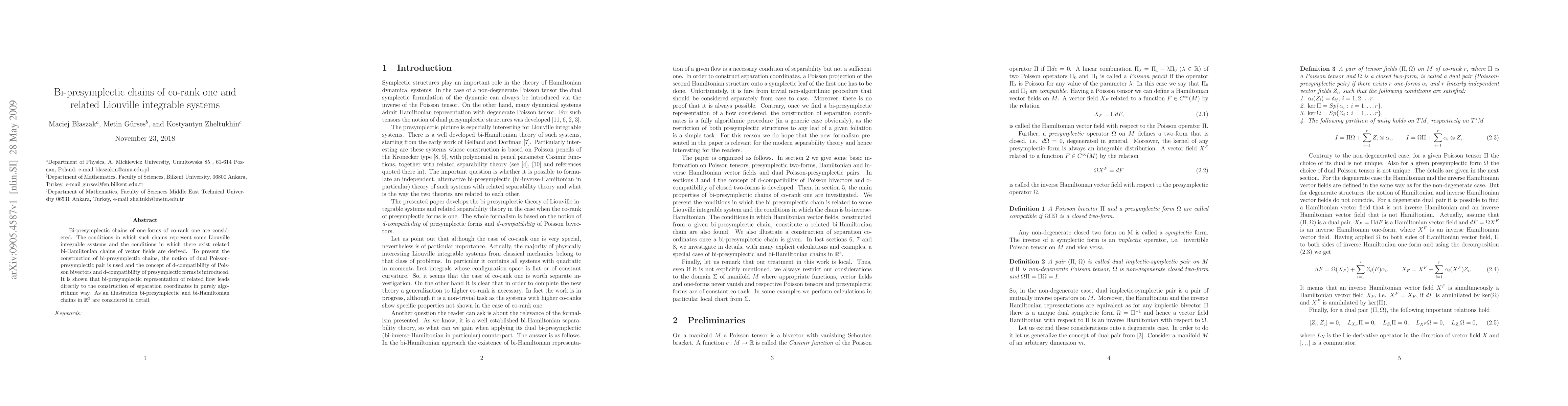 This paper explores bi-presymplectic chains of co-rank one and their relation to Liouville integrable systems, deriving conditions for their representation and introducing bi-Hamiltonian chains. It employs dual Poisson-presymplectic pairs and d-compatibility concepts to construct separation coordinates algorithmically.