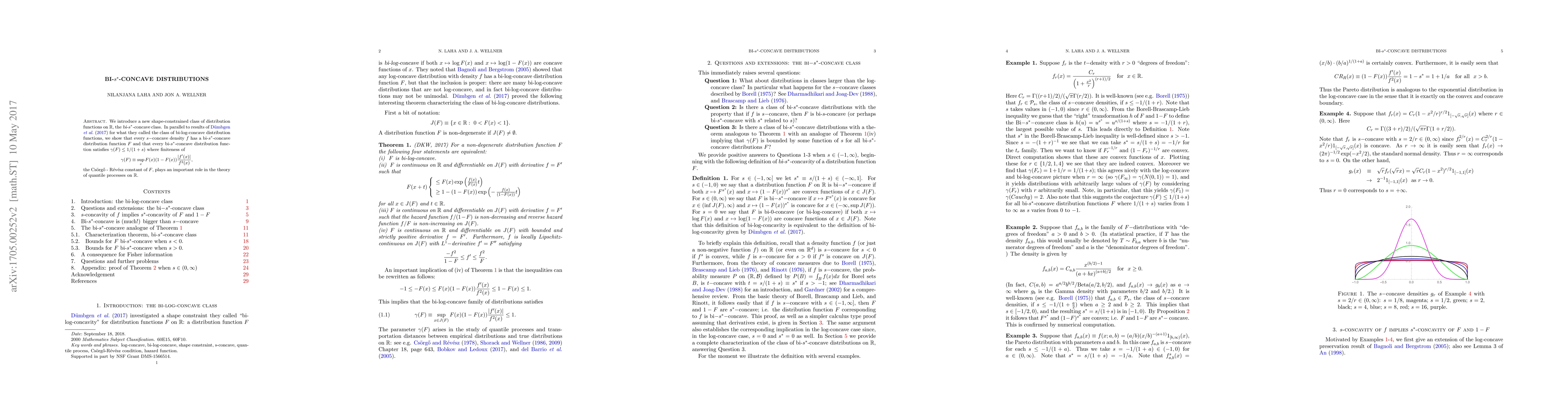 This paper introduces the bi-$s^*$-concave class of distribution functions on $\mathbb{R}$, paralleling the bi-log-concave class. It demonstrates that every s-concave density corresponds to a bi-$s^*$-concave distribution function, and establishes an upper bound on the Csörgő-Révész constant for these functions.