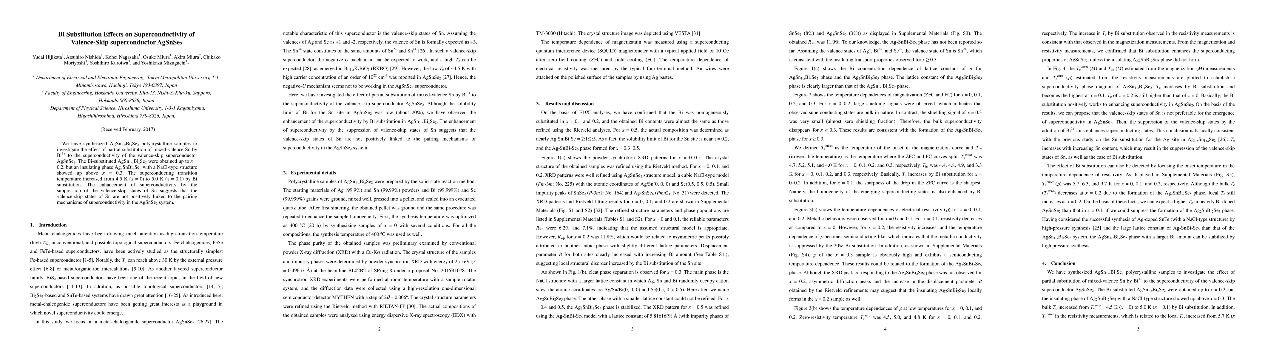 This study investigates the impact of Bi substitution for Sn in AgSnSe2, finding that the superconducting transition temperature increases from 4.5 K to 5.0 K with Bi doping up to x = 0.1, suggesting that valence-skip states of Sn do not support superconductivity in this system.