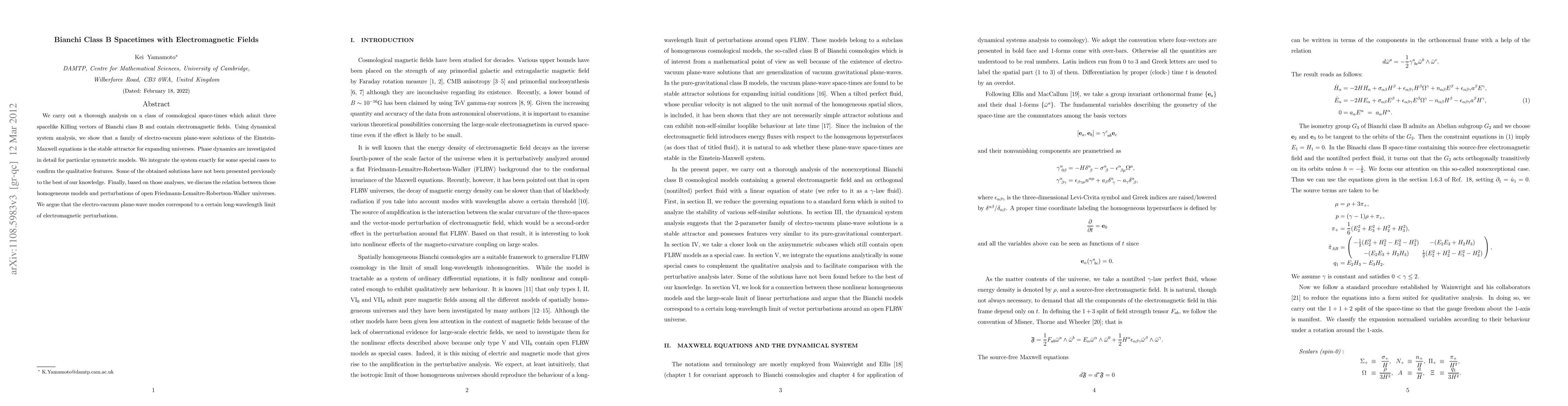 This research paper investigates Bianchi class B spacetimes with electromagnetic fields, finding that vacuum plane-wave solutions are the stable attractors for expanding universes, and relates these models to perturbations of open FLRW universes.
