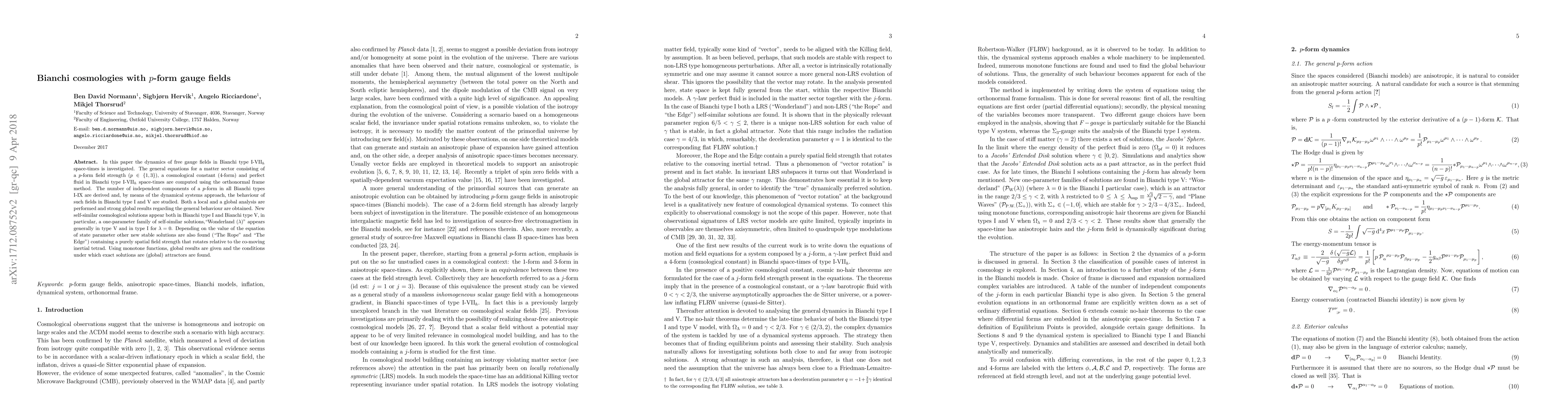 Researchers investigated the dynamics of free gauge fields in Bianchi cosmologies with p-form gauge fields, finding new self-similar solutions that rotate relative to the co-moving inertial tetrad.