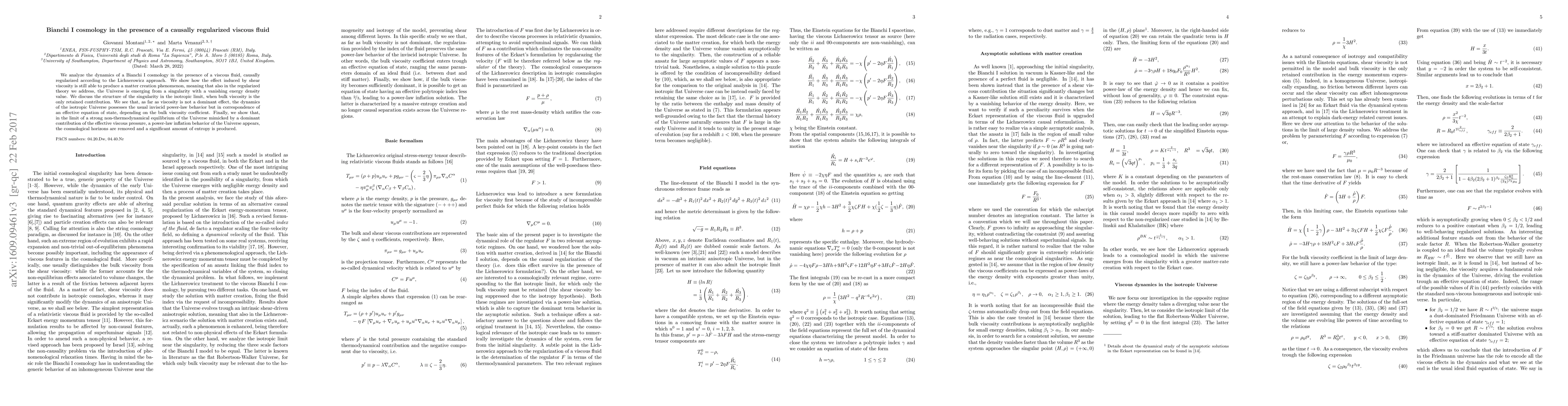 We analyze the dynamics of a Bianchi I cosmology in the presence of a viscous fluid, causally regularized according to the Lichnerowicz approach. We show how the effect induced by shear viscosity is still able to produce a matter creation phenomenon, meaning that also in the regularized theory we address, the Universe is emerging from a singularity with a vanishing energy density value. We discuss the structure of the singularity in the isotropic limit, when bulk viscosity is the only retained contribution. We see that, as far as viscosity is not a dominant effect, the dynamics of the isotropic Universe possesses the usual inviscid power-law behavior but in correspondence of aneffective equation of state, depending on the bulk viscosity coefficient. Finally, we show that, in the limit of a strong non-thermodynamical equilibrium of the Universe mimicked by a dominant contribution of the effective viscous pressure, a power-law inflation behavior of the Universe appears, the cosmological horizons are removed and a significant amount of entropy is produced.