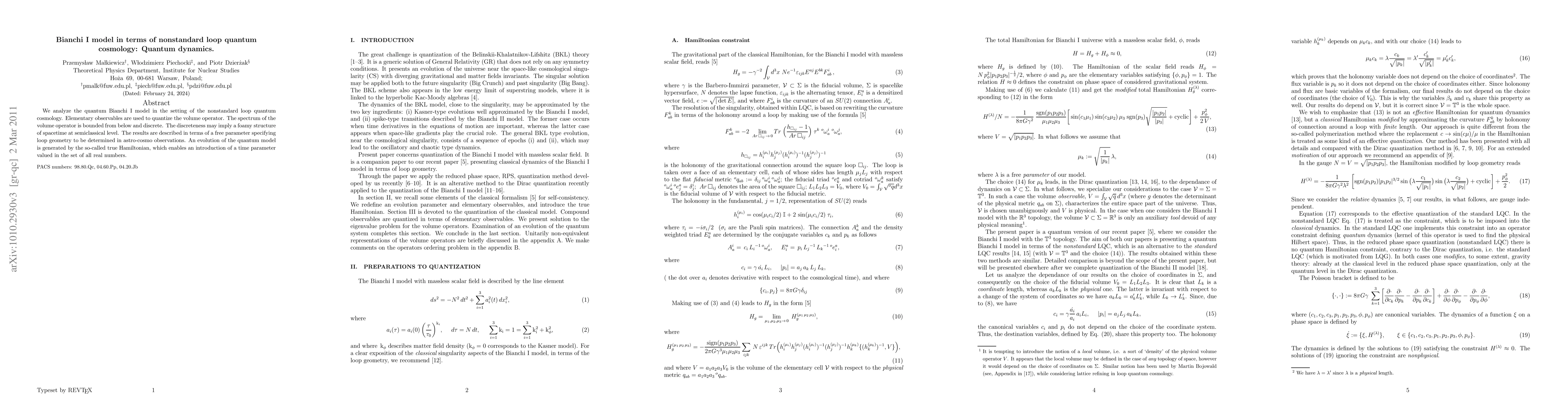 This paper quantizes the Bianchi I model using nonstandard loop quantum cosmology, finding a discrete and bounded volume operator spectrum that may suggest a foamy spacetime structure. The true Hamiltonian introduces a continuous time parameter for the quantum model's evolution, with loop geometry parameters to be determined by astro-cosmological observations.