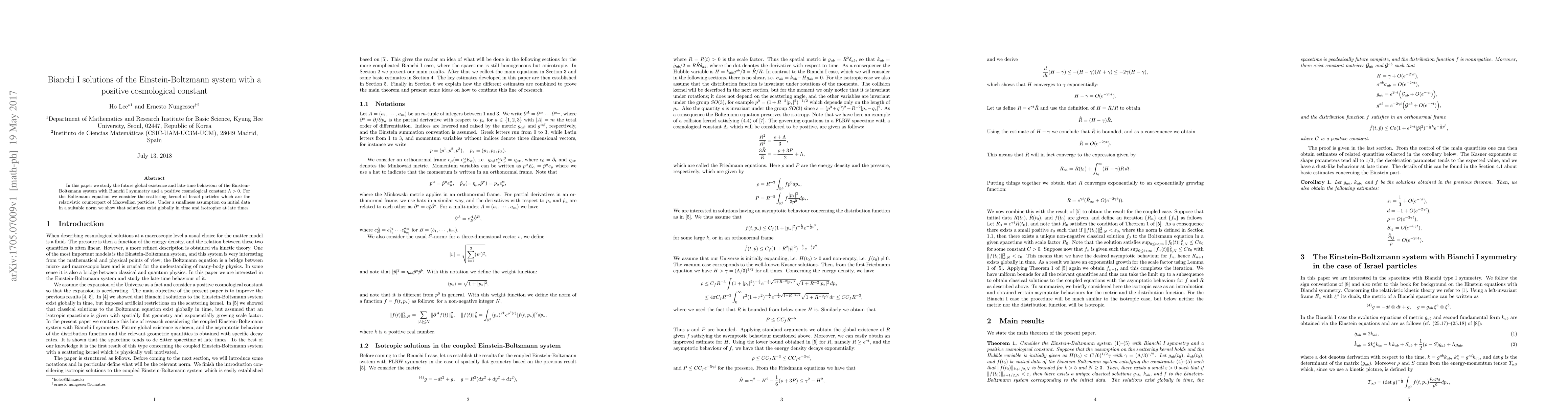 This paper investigates the global existence and late-time behavior of the Einstein-Boltzmann system with Bianchi I symmetry and a positive cosmological constant. It demonstrates that under small initial data conditions, solutions exist globally and tend towards isotropy over time.