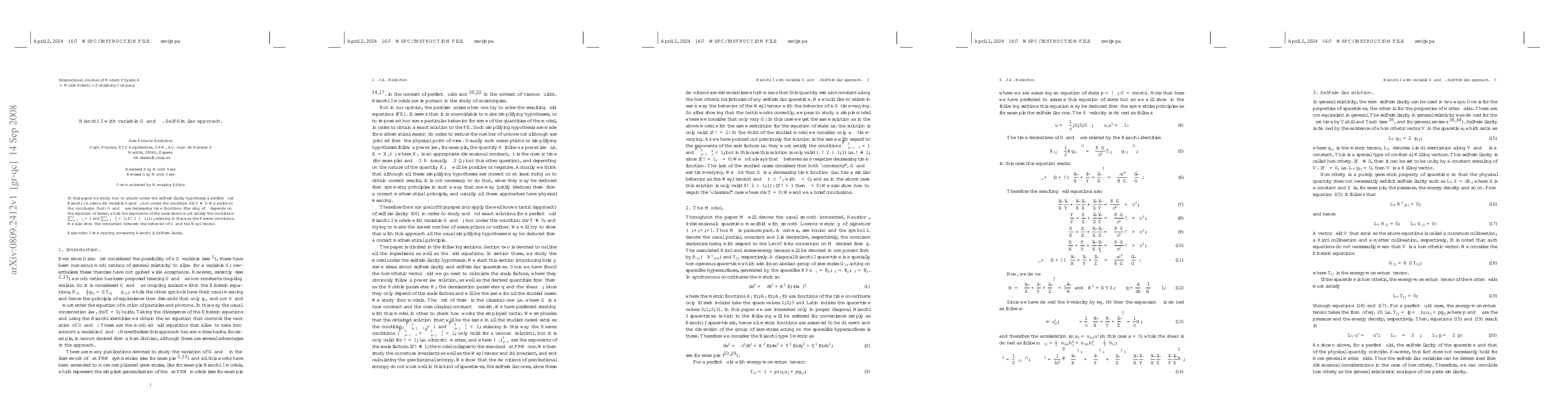 In this paper we study how to attack under the self-similarity hypothesis a perfect fluid Bianchi I model with variable $G,$and $\Lambda,$ but under the condition $\operatorname{div}T\neq0.$ We arrive to the conclusion that: $G$ and $\Lambda$ are decreasing time functions (the sing of $\Lambda$ depends on the equation of state), while the exponents of the scale factor must satisfy the conditions $\sum_{i=1}^{3}\alpha_{i}=1$ and $\sum_{i=1}^{3}\alpha_{i}^{2}<1,$ $\forall\omega\in(-1,1) ,$ relaxing in this way the Kasner conditions. We also show the connection between the behavior of $G$ and the Weyl tensor.