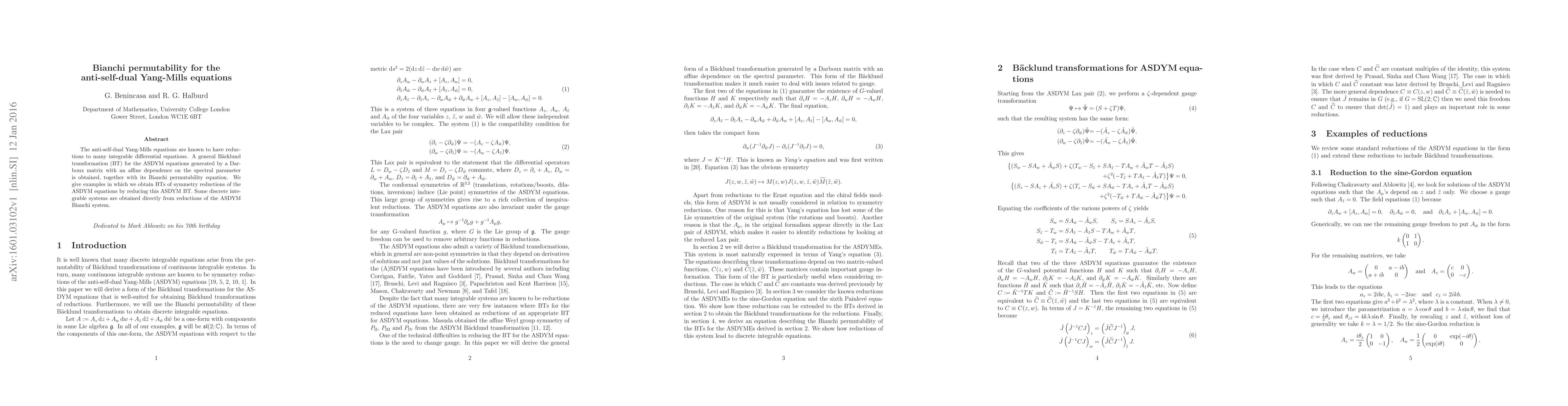 This paper develops a general Bäcklund transformation for the anti-self-dual Yang-Mills equations (ASDYM) and presents its Bianchi permutability equation. It also explores symmetry reductions and demonstrates how these lead to discrete integrable systems.
