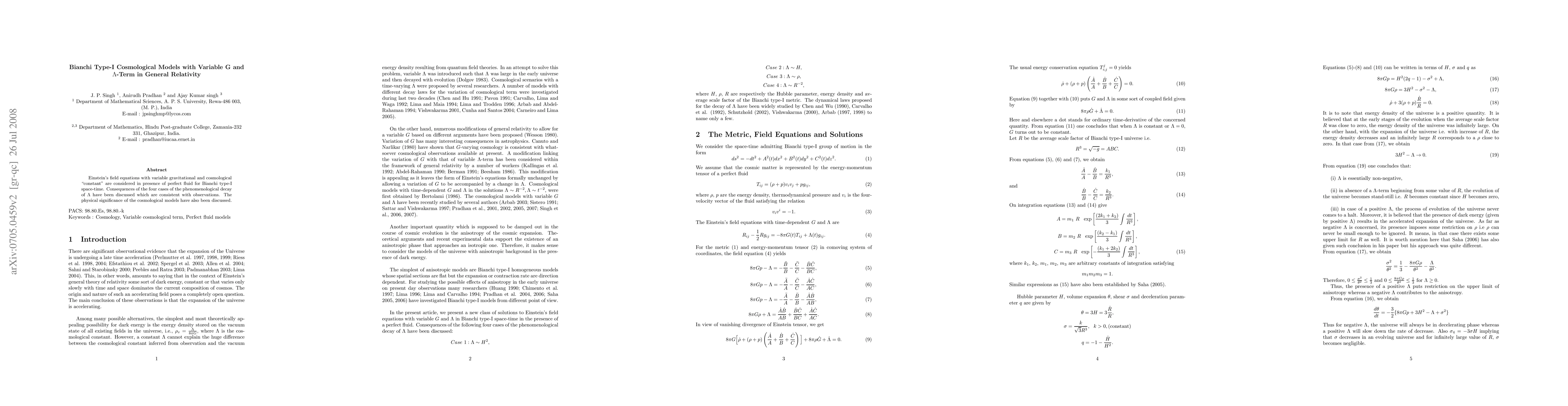 Einstein's field equations with variable gravitational and cosmological ``constant'' are considered in presence of perfect fluid for Bianchi type-I spacetime. Consequences of the four cases of the phenomenological decay of $\Lambda$ have been discussed which are consistent with observations. The physical significance of the cosmological models have also been discussed.