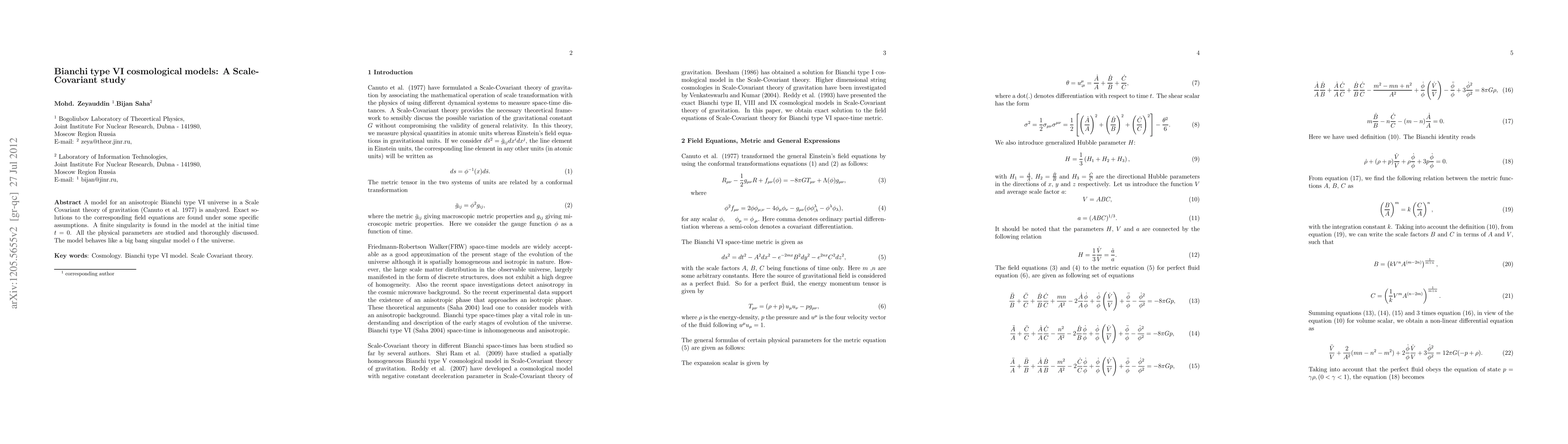 Researchers analyzed a Bianchi type VI universe model, finding a finite singularity at $t=0$ that behaves like a big bang model, with parameters consistent with present-day observations.
