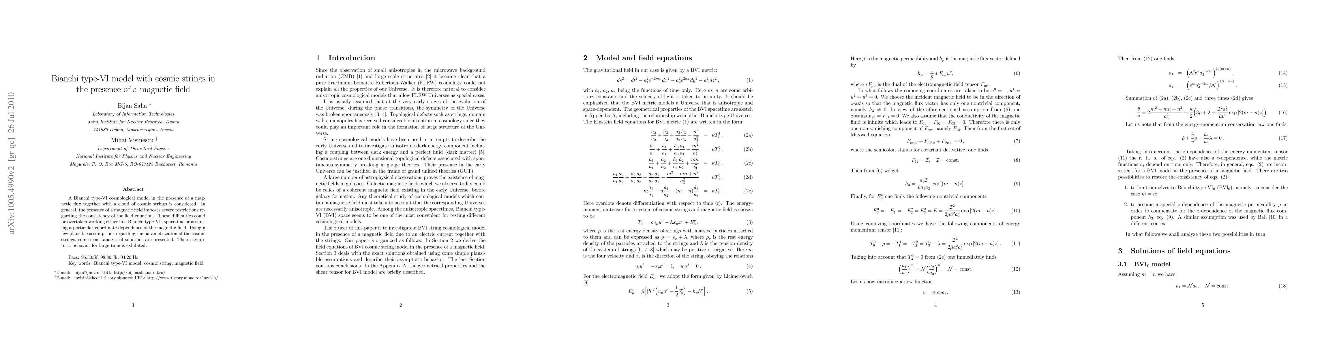 This paper explores a Bianchi type-VI cosmological model with cosmic strings and a magnetic field, presenting exact analytical solutions under specific assumptions. The study highlights the challenges posed by magnetic fields and demonstrates solutions' asymptotic behavior over time.