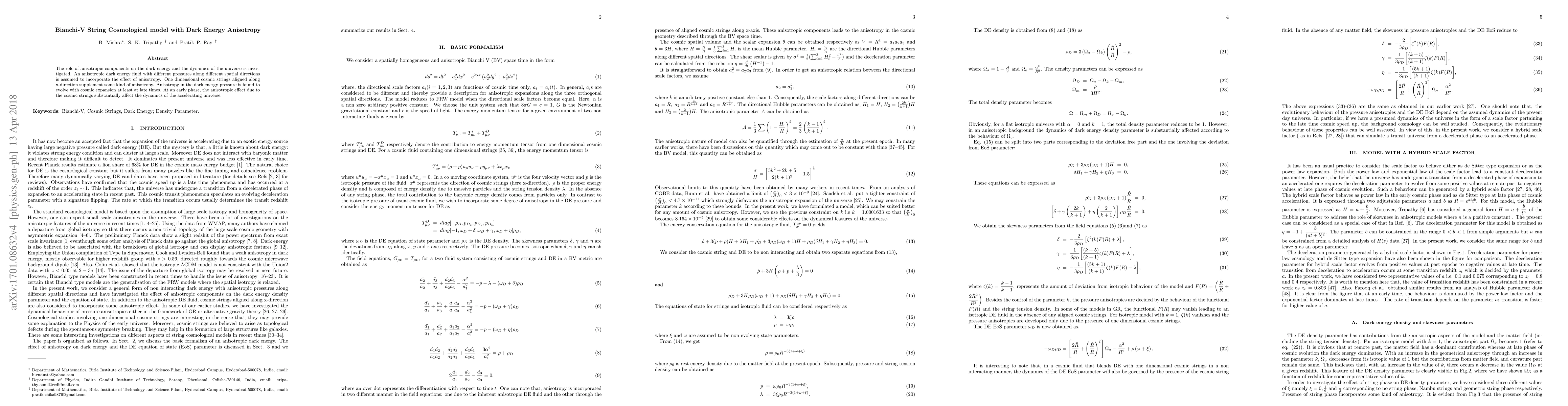The role of anisotropic components on the dark energy and the dynamics of the universe is investigated. An anisotropic dark energy fluid with different pressures along different spatial directions is assumed to incorporate the effect of anisotropy. One dimensional cosmic strings aligned along x-direction supplement some kind of anisotropy. Anisotropy in the dark energy pressure is found to evolve with cosmic expansion at least at late times. At an early phase, the anisotropic effect due to the cosmic strings substantially affect the dynamics of the accelerating universe.