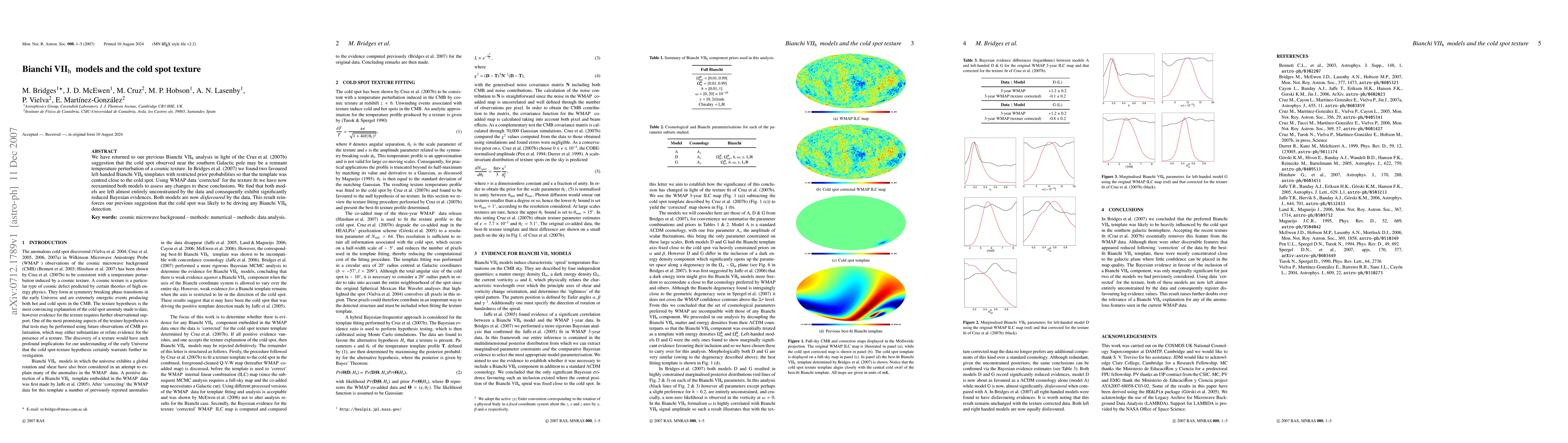 This paper revisits Bianchi VII_h models to determine if they fit the cold spot near the southern Galactic pole, suggesting a cosmic texture origin. Despite previous support, new WMAP data analysis shows both models are now largely unconstrained and disfavoured, reinforcing the idea that the cold spot may be the primary driver of any detected Bianchi VII_h features.