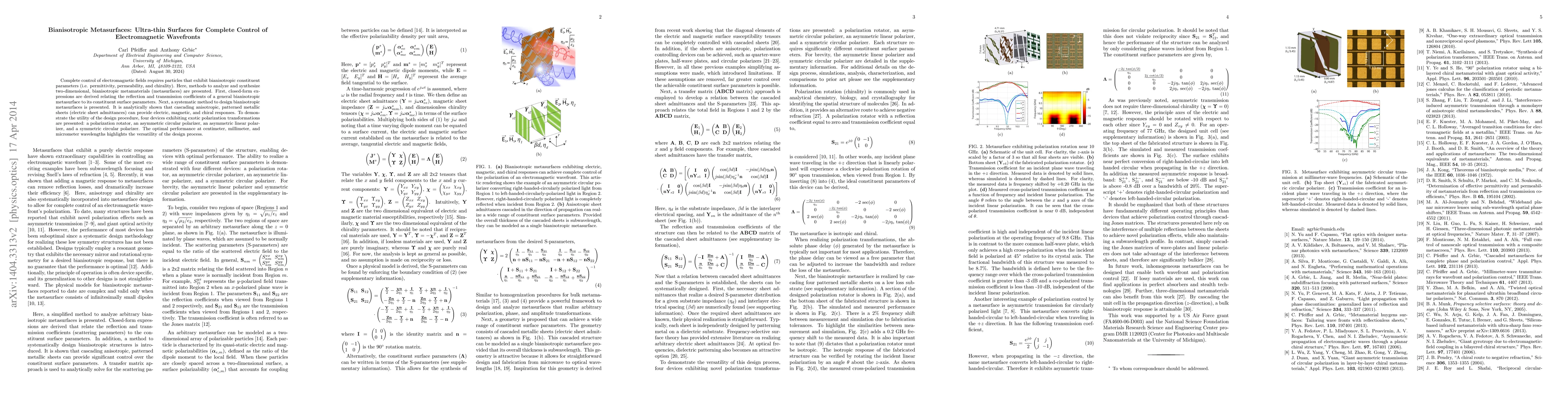 The research presents closed-form expressions relating the reflection and transmission coefficients of a general bianisotropic metasurface to its constituent surface parameters, followed by a systematic method to design bianisotropic metasurfaces by cascading anisotropic, patterned metallic sheets.