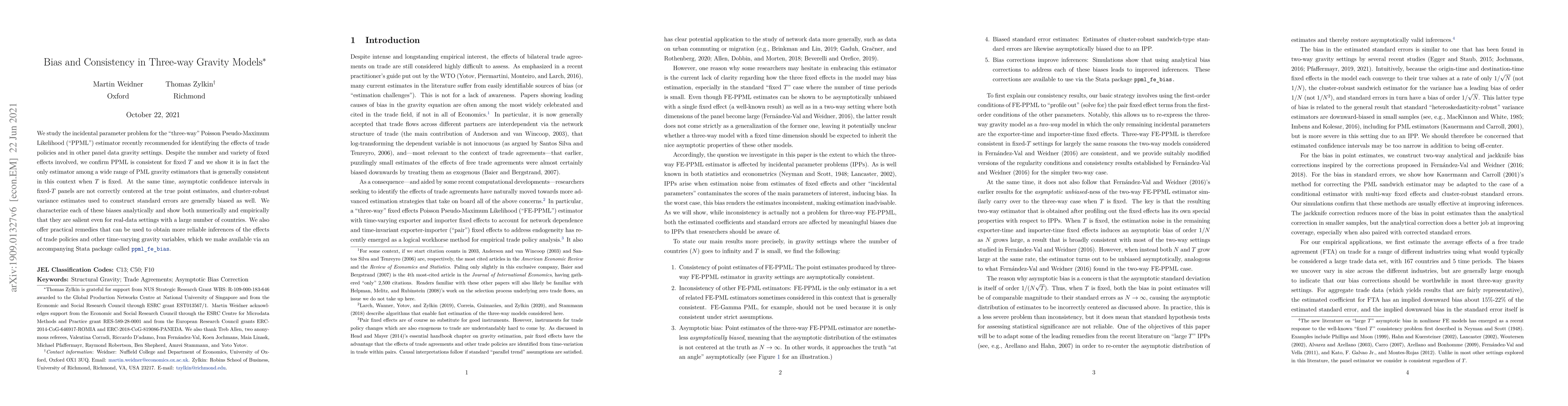 We study the incidental parameter problem for the ``three-way'' Poisson {Pseudo-Maximum Likelihood} (``PPML'') estimator recently recommended for identifying the effects of trade policies and in other panel data gravity settings. Despite the number and variety of fixed effects involved, we confirm PPML is consistent for fixed $T$ and we show it is in fact the only estimator among a wide range of PML gravity estimators that is generally consistent in this context when $T$ is fixed. At the same time, asymptotic confidence intervals in fixed-$T$ panels are not correctly centered at the true point estimates, and cluster-robust variance estimates used to construct standard errors are generally biased as well. We characterize each of these biases analytically and show both numerically and empirically that they are salient even for real-data settings with a large number of countries. We also offer practical remedies that can be used to obtain more reliable inferences of the effects of trade policies and other time-varying gravity variables, which we make available via an accompanying Stata package called ppml_fe_bias.
