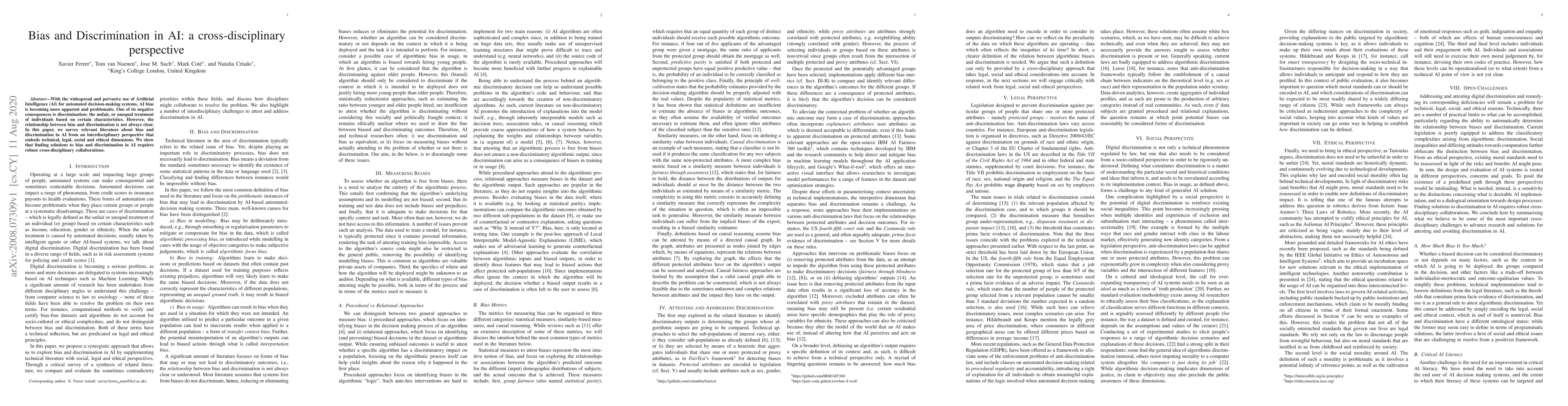 This paper surveys literature on AI bias and discrimination from technical, legal, social, and ethical perspectives, highlighting the need for robust cross-disciplinary collaborations to address these issues effectively.