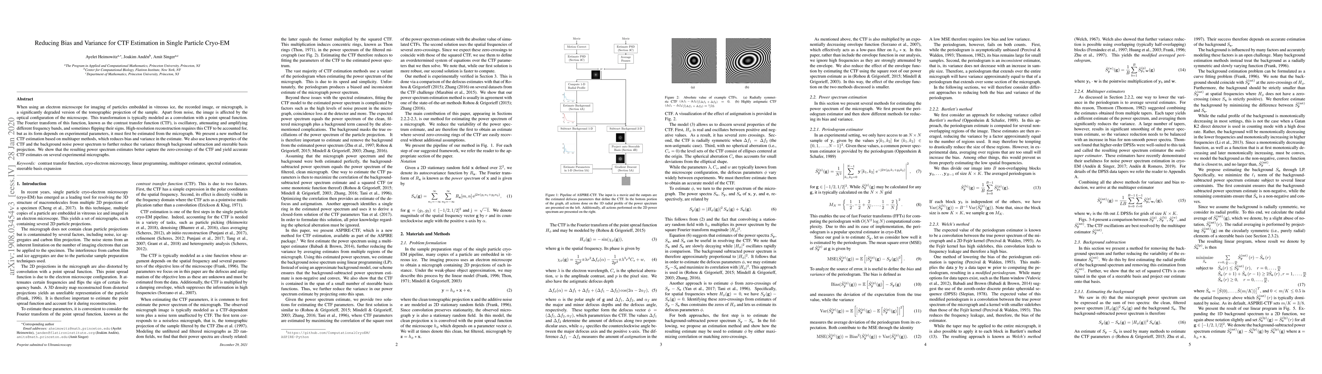 This paper introduces a novel method for estimating the contrast transfer function (CTF) in electron microscopy, using the multi-taper method for power spectral density estimation to reduce bias and variance. The method leverages the known properties of the CTF and background to enhance accuracy, achieving precise zero-crossings in the low-mid frequency range.