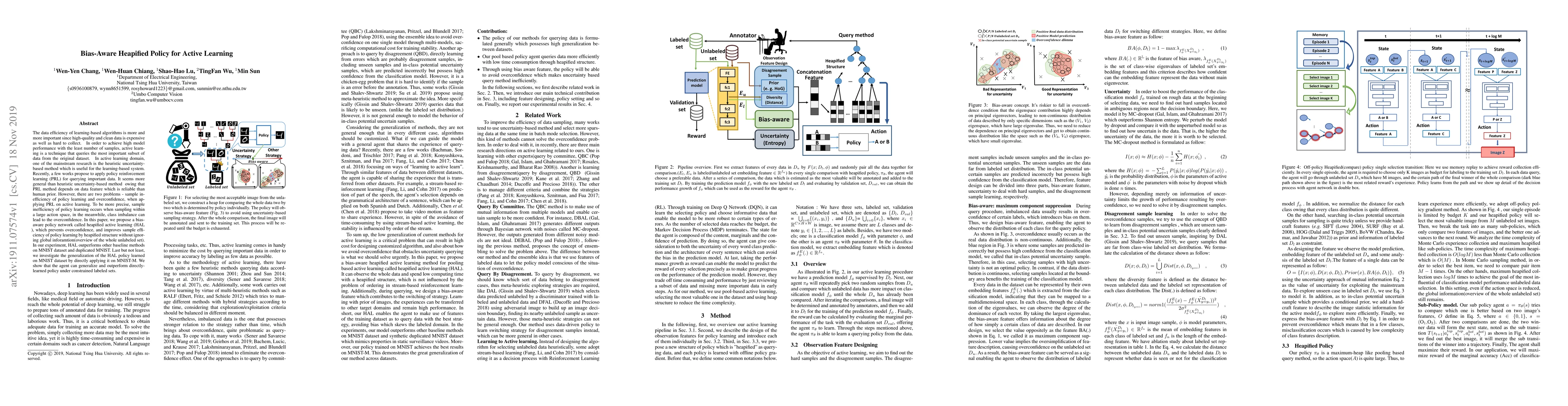 This paper proposes a bias-aware policy network called Heapified Active Learning (HAL) to improve data efficiency in active learning, which outperforms baseline methods on MNIST datasets and demonstrates generalization on a challenging variant.
