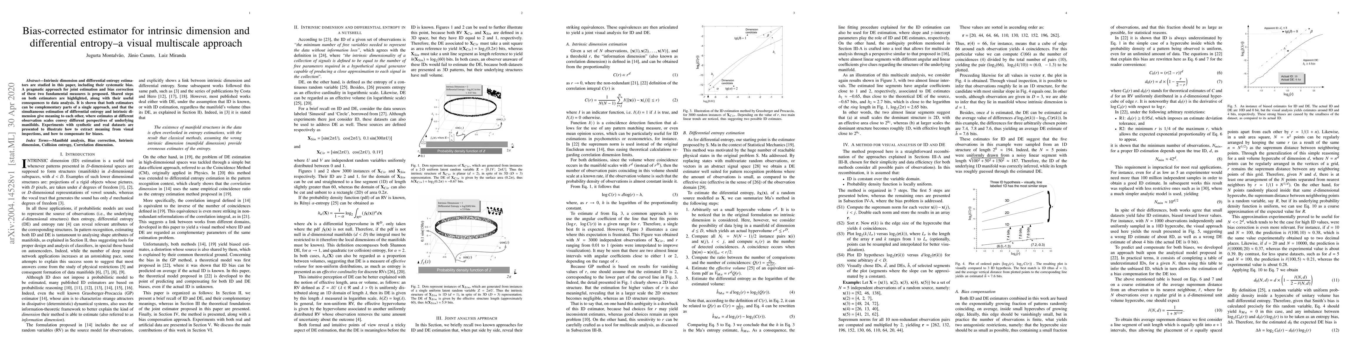 This paper proposes a method for jointly estimating and correcting the bias of intrinsic dimension and differential entropy, highlighting shared steps and their implications for data analysis. Experiments demonstrate how visual multiscale approaches can extract meaningful insights and compensate for systematic biases in both measures.