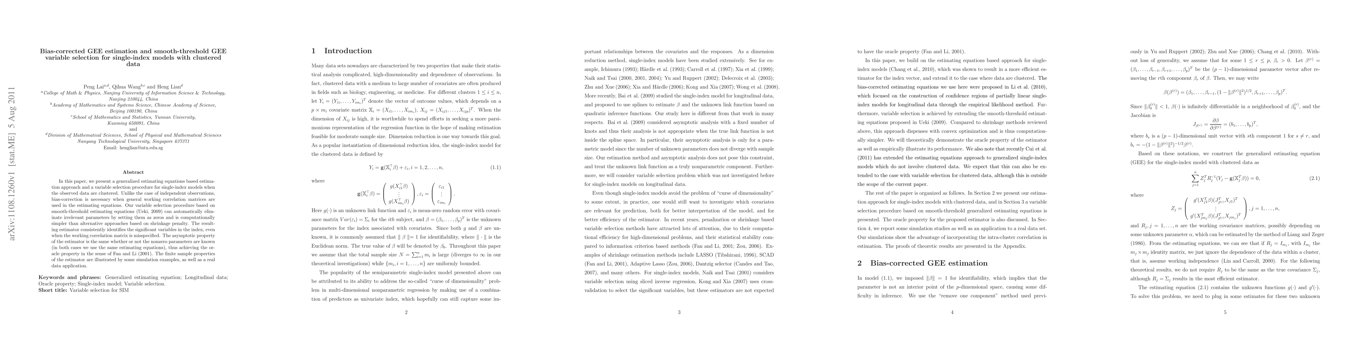 This paper presents a method for estimating single-index models with clustered data that corrects for bias using generalized estimating equations and selects variables efficiently using smooth-threshold estimating equations.