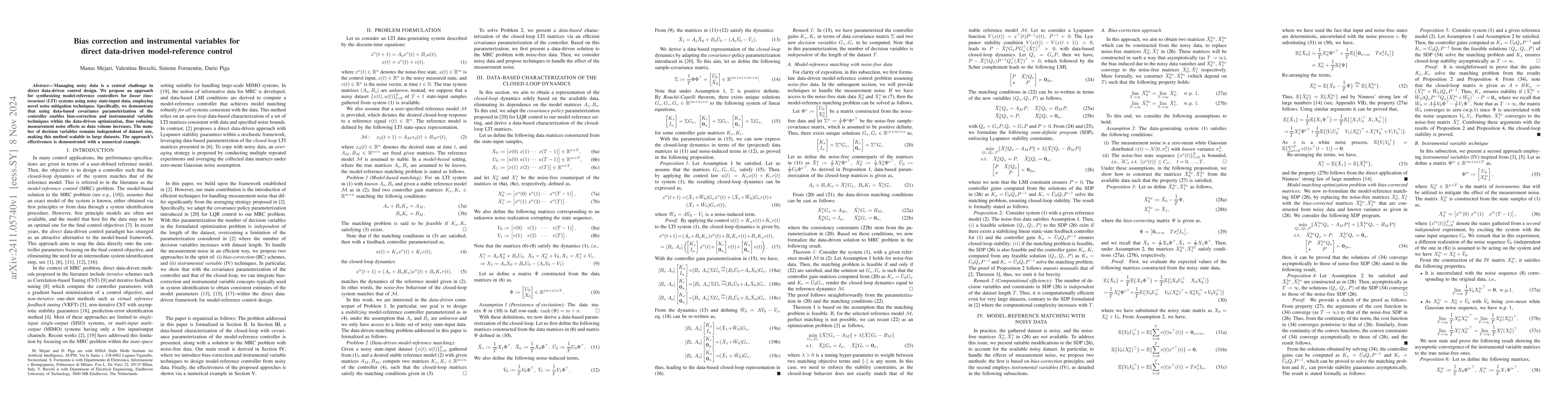 This paper proposes a novel method for synthesizing model-reference controllers for linear time-invariant systems using noisy data, incorporating bias correction and instrumental variable techniques to mitigate noise effects. The approach remains scalable with data size, demonstrated effectively via a numerical example.