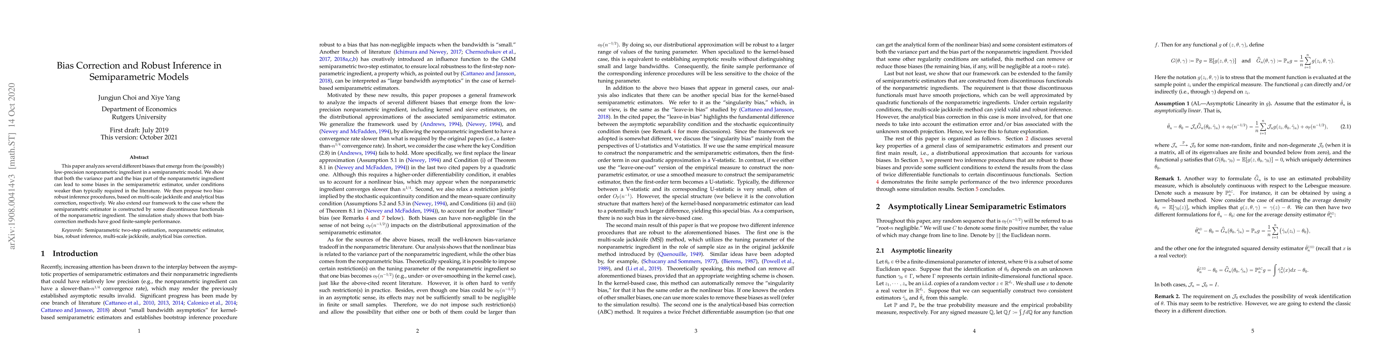 This paper addresses biases arising from low-precision nonparametric components in semiparametric models, proposing two robust inference procedures: multi-scale jackknife and analytical bias correction. Simulation results demonstrate their effective finite-sample performance.