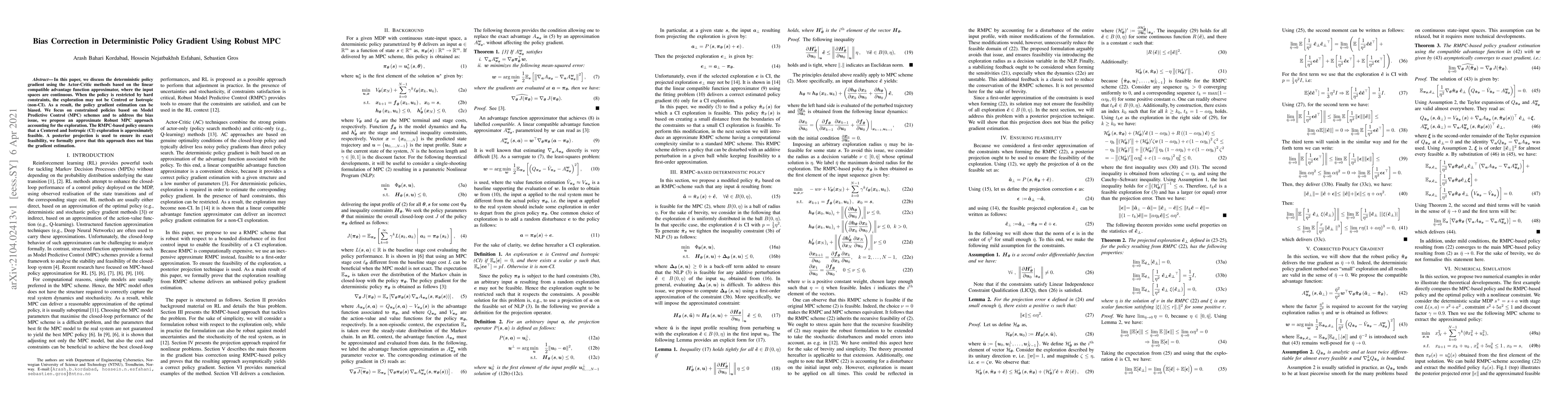This paper proposes a method to correct bias in deterministic policy gradient estimation for constrained policies using Robust MPC. It introduces an approximate RMPC approach that ensures Centered and Isotropic exploration, formally proving that this method does not introduce bias in gradient estimation.